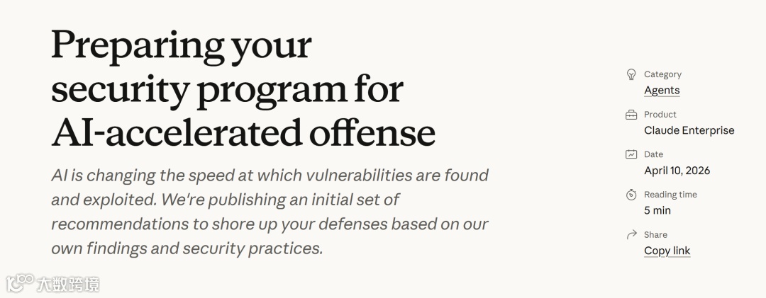 Anthropic启动“玻璃翼计划”(Project Glasswing),发布技术团队应对指南,明确传统安全防线失效,必须转向AI自动化攻防。