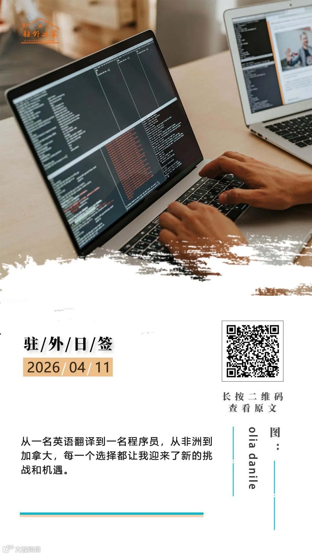 导读:从一名英语翻译到一名程序员,从非洲到加拿大,每一个选择都让我迎来了新的挑战和机遇。