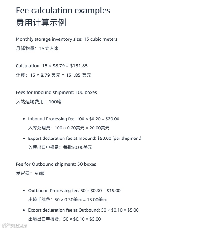 ④ 费用包含跨境物流成本,不含关税、保险等附加费用