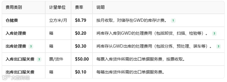 仓储费:相比美国本土仓,GWD的货源仓储和处理费最高节省45%,并省去海外仓中转费