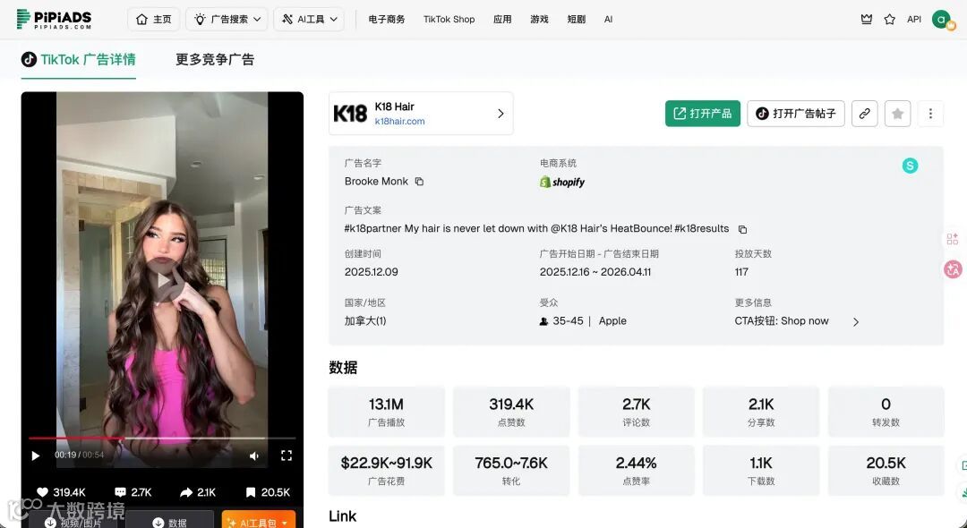 依托K18品牌验证护发品类需求,功能性定位精准。#k18partner合作标识强化专业信任。护发品类客单价稳、复购率高,适合搭建会员体系。重点:视频需展示使用前后对比效果。