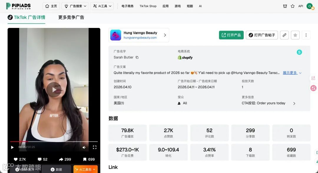 核心结论:近7天TikTok独立站这8款产品广告流量异常突出。