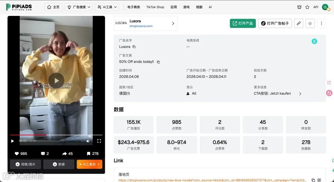 如何判定真爆款?需验证三点:广告投放时长、素材复用规模、落地页转化路径效率。据此标准,今日案例全部达标。