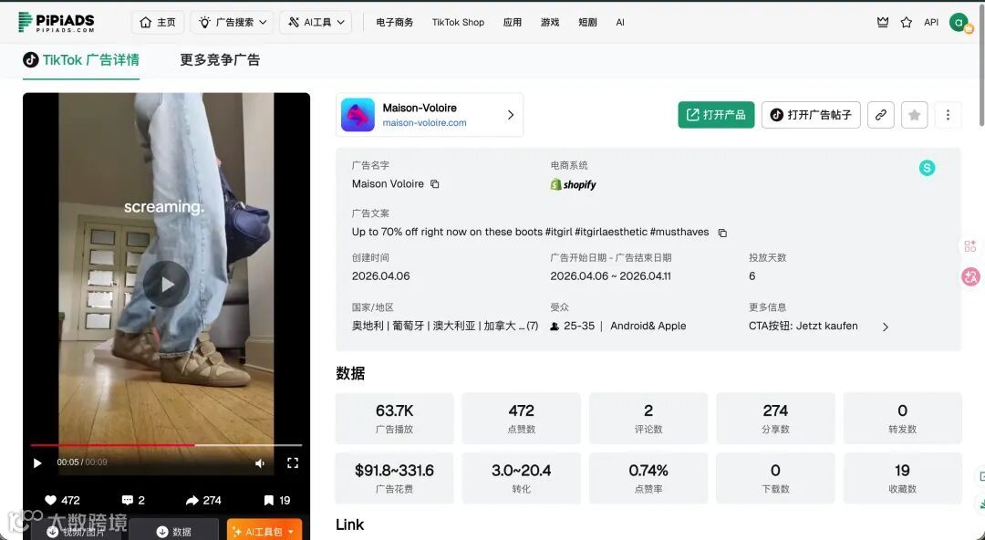 Tikto广告数据: