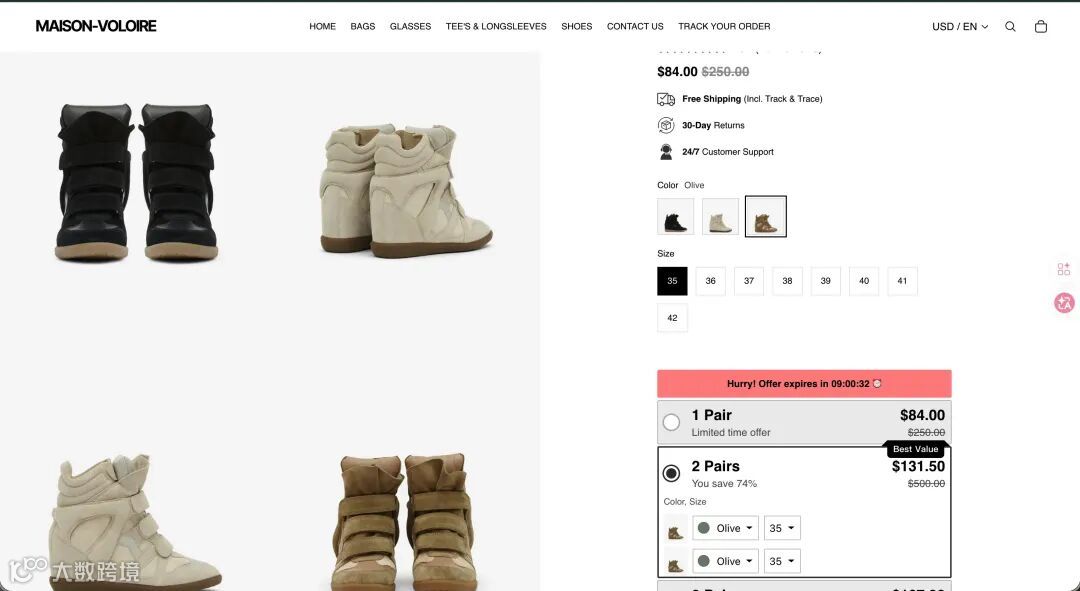 采用「限时折扣+时间紧迫性」策略,文案简洁高效。卫衣品类受众广泛,无需过多解释,配合"今日截止"强化冲动消费。落地页设计简洁,转化路径短。适合新手复制的标准化模板。