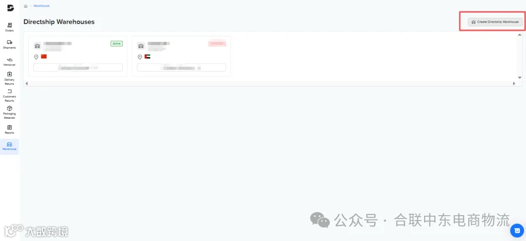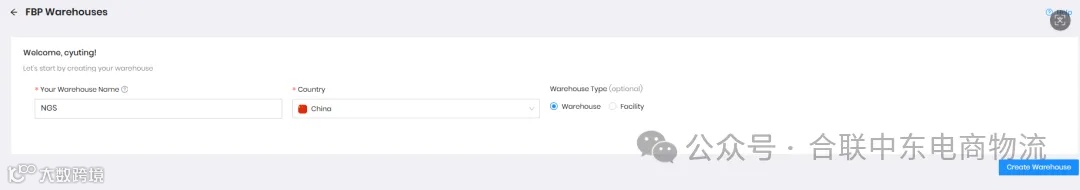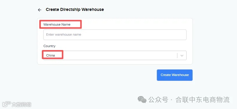 选择仓库国籍:点右上角「创建直发仓库(Create Directship Warehouse)」;