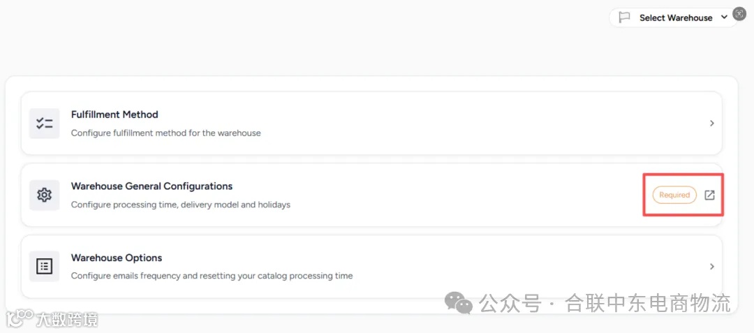 点击「仓库通用配置(Warehouse General Configurations)」的「必填(Required)」选项;