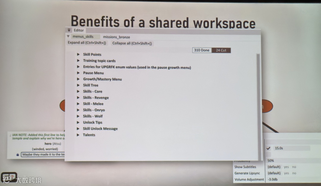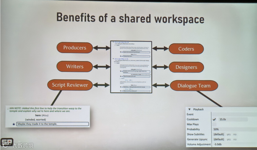 此外,Google Docs、台词数据库、Perforce这三个地方的由三组人维护,数据很容易脱节,来不及同步。