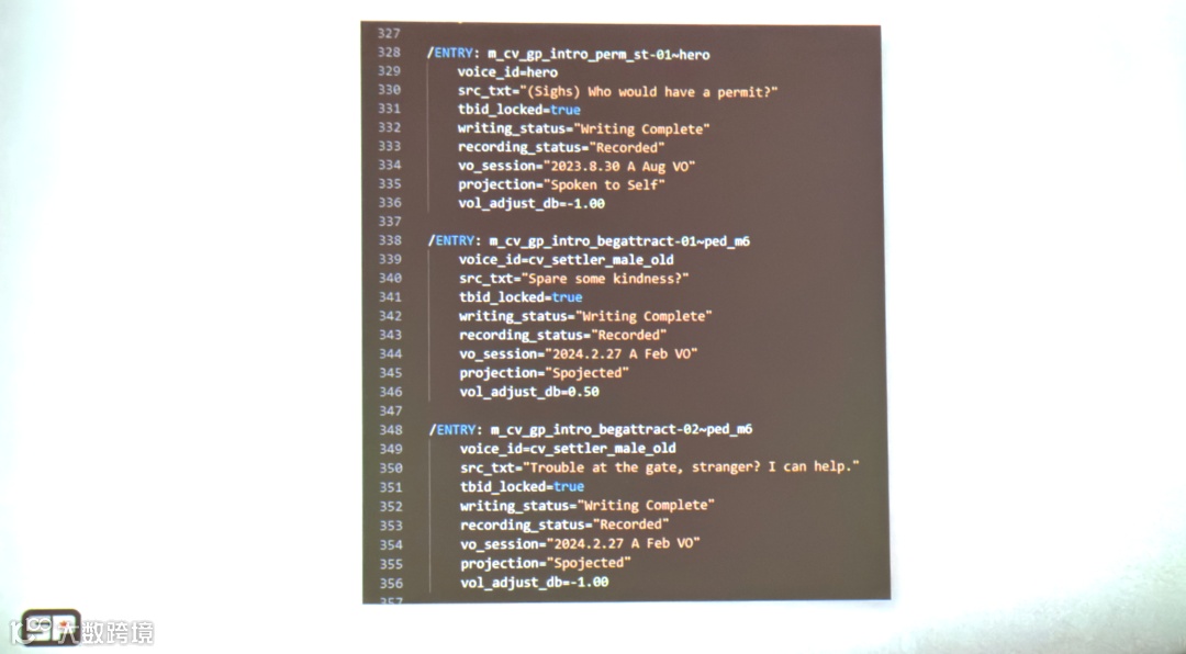 这是新管线里唯一的例外——本地化团队还得用旧的台词数据库。但我们写了脚本,能自动从Perforce把数据同步给他们,至少内部不再有人手动维护台词数据库了。