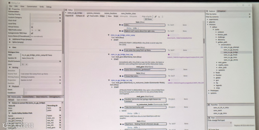 以前在《对马岛之魂》里,同一份脚本散落在三个地方,我们必须手动保持同步,策划必须手动挂每一条台词。大量时间耗在搬运和对接上,编剧觉得自己的修改总是不能快速落地,这整个流程一团乱。