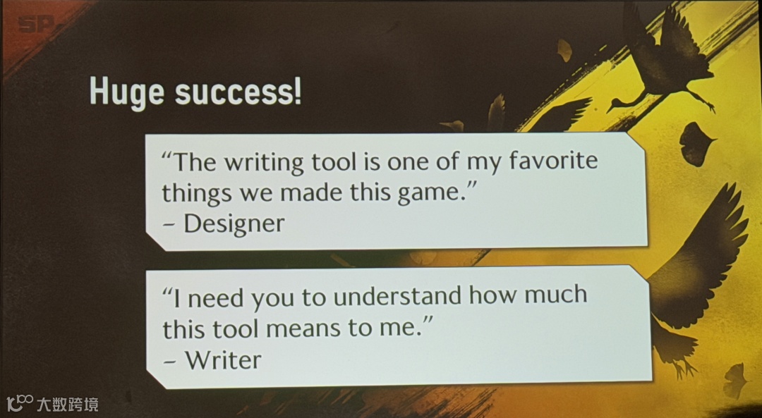 先说预期之内的收益:策划再也不用手动挂台词了;大家不用再三个地方手动同步数据了;Google Docs和台词数据库也退役了,编剧和策划能统一用自己的工具了,想加什么功能自己说了算。