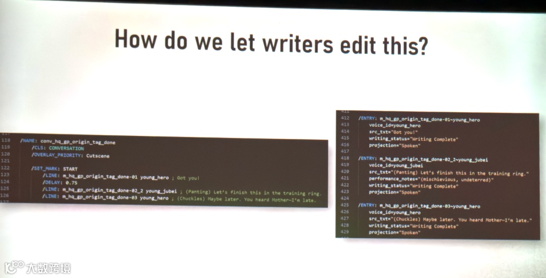 第二个问题就大了:怎么让不懂代码的编剧,去编辑游戏的底层实现文件?