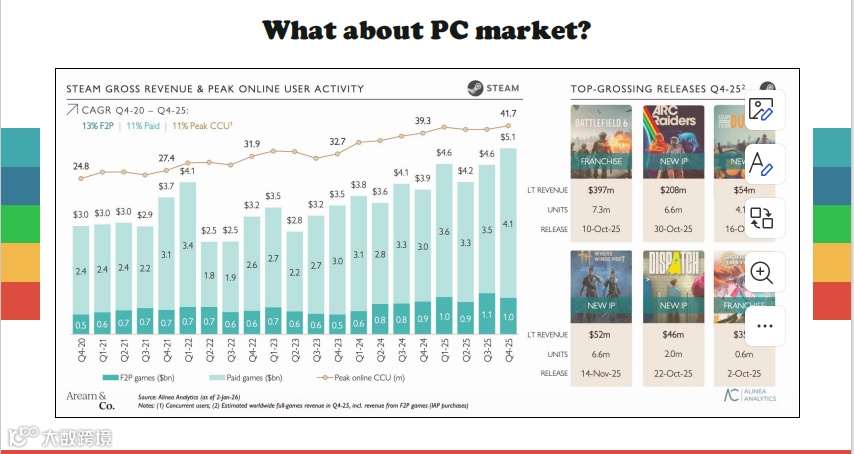 他提到,在全球竞争持续加剧、发行难度不断提升的背景下,开发者需要提升产品完整度;在PC市场,开发者应尽早进行社区建设和愿望单积累以吸引海外发行商的注意;中国开发者在全球合作过程中,需要重视营销叙事不够本地化、IP调整接受度不足等问题。