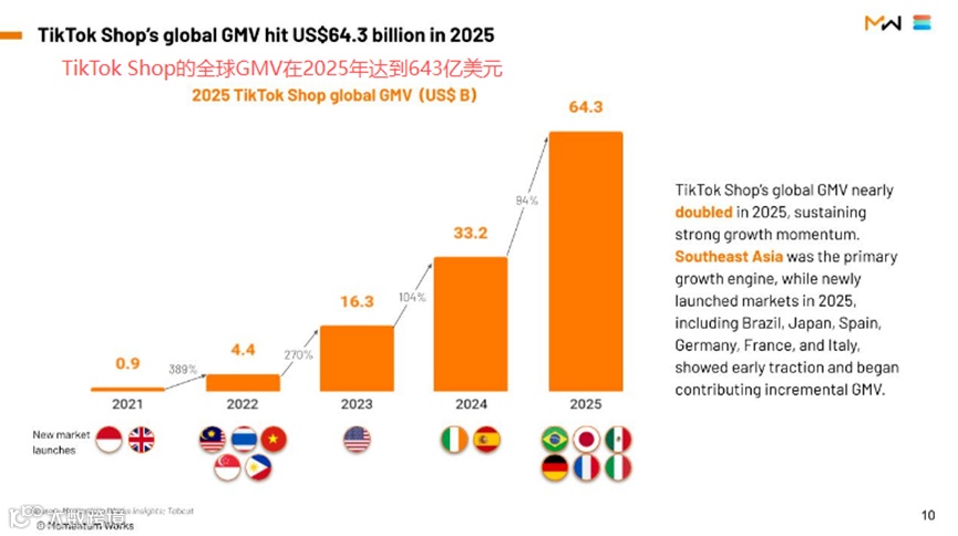 TikTok Shop全球GMV达到643亿美元 图源:Momentum Works