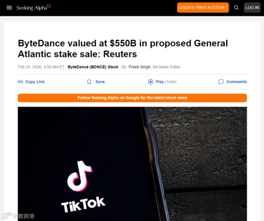 交易有望以6000亿美元估值达成。该估值在全球互联网领域位居顶尖行列——当前腾讯市值约4万亿元,字节跳动作为未上市公司,规模已与之相当。