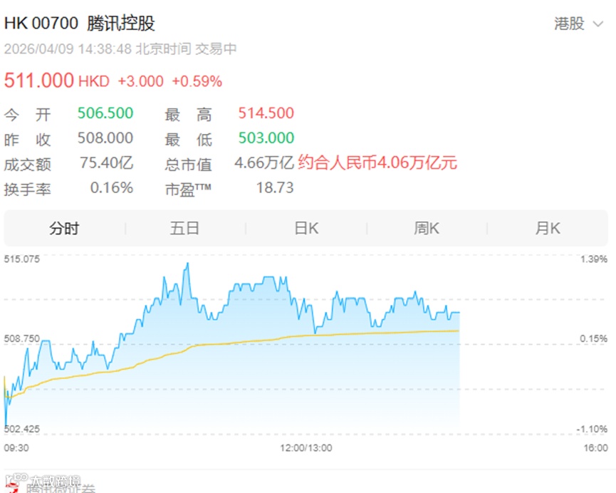 腾讯市值在4万亿元出头 图源:腾讯微证券