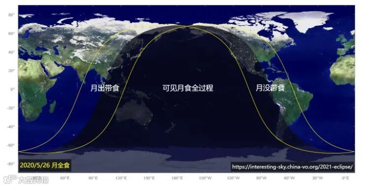 这次月食,在亚洲东部、大洋洲、太平洋大部、北美洲(除东北部),南美洲(除极东部)及南极洲可以看到。中国除西藏极西部、新疆极西部外,其他地区可见月亮带食而出。