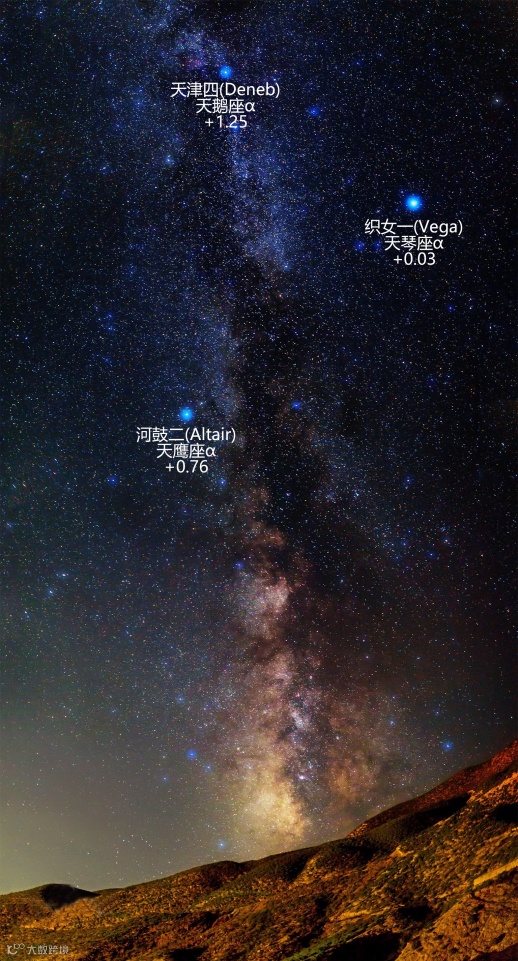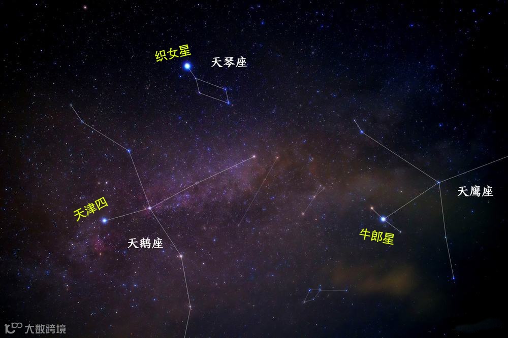 牛郎星和织女星正好位于天河的两边,在夏夜特别显眼。