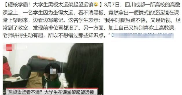 用望远镜看黑板,绝对不是哗众取宠,一边架着望远镜,一边认真地记着笔记,这种求知若渴的状态,学渣们可是装不出来的。