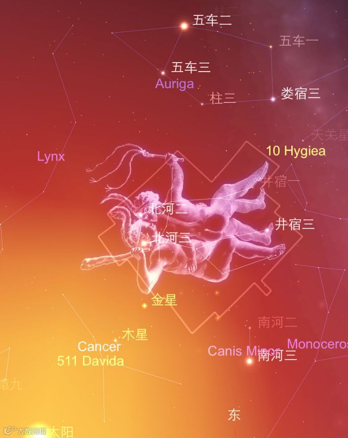一、使用星图定位木星的大致位置。