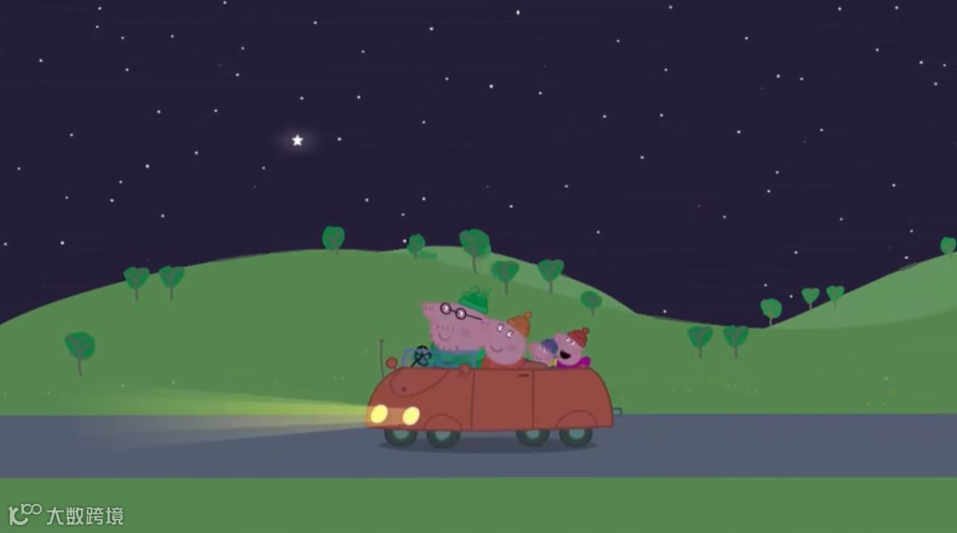 某天晚上,佩奇睡觉前忽然很想看星星,猪妈妈说了一句“或许我们不该错过这样难得的机会”,随后就和猪爸爸一起,带着佩奇和乔治,开车去猪爷爷和猪奶奶家。