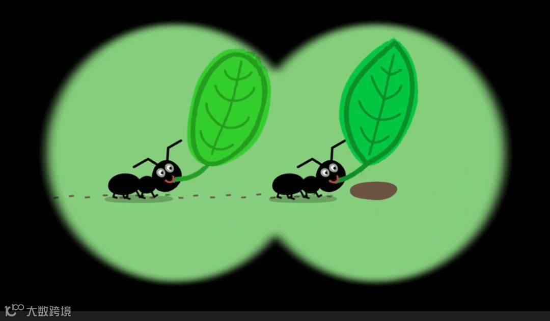 爸爸说:“这些是蚂蚁的脚印,他们在收集树叶当食物。”