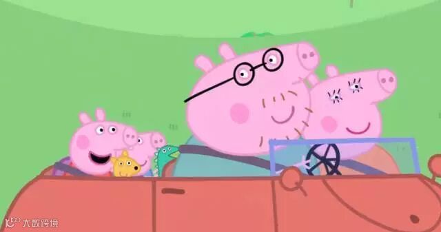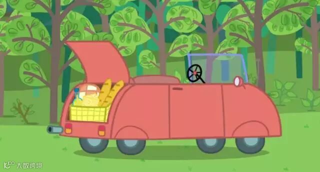 比如,有一次,佩奇爸爸开车带着一家子出去野餐。