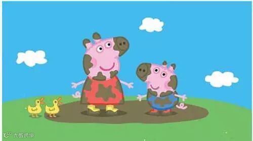 佩奇常常喜欢跳泥坑,满身污泥,妈妈只会轻轻地说“只是些泥而已”。