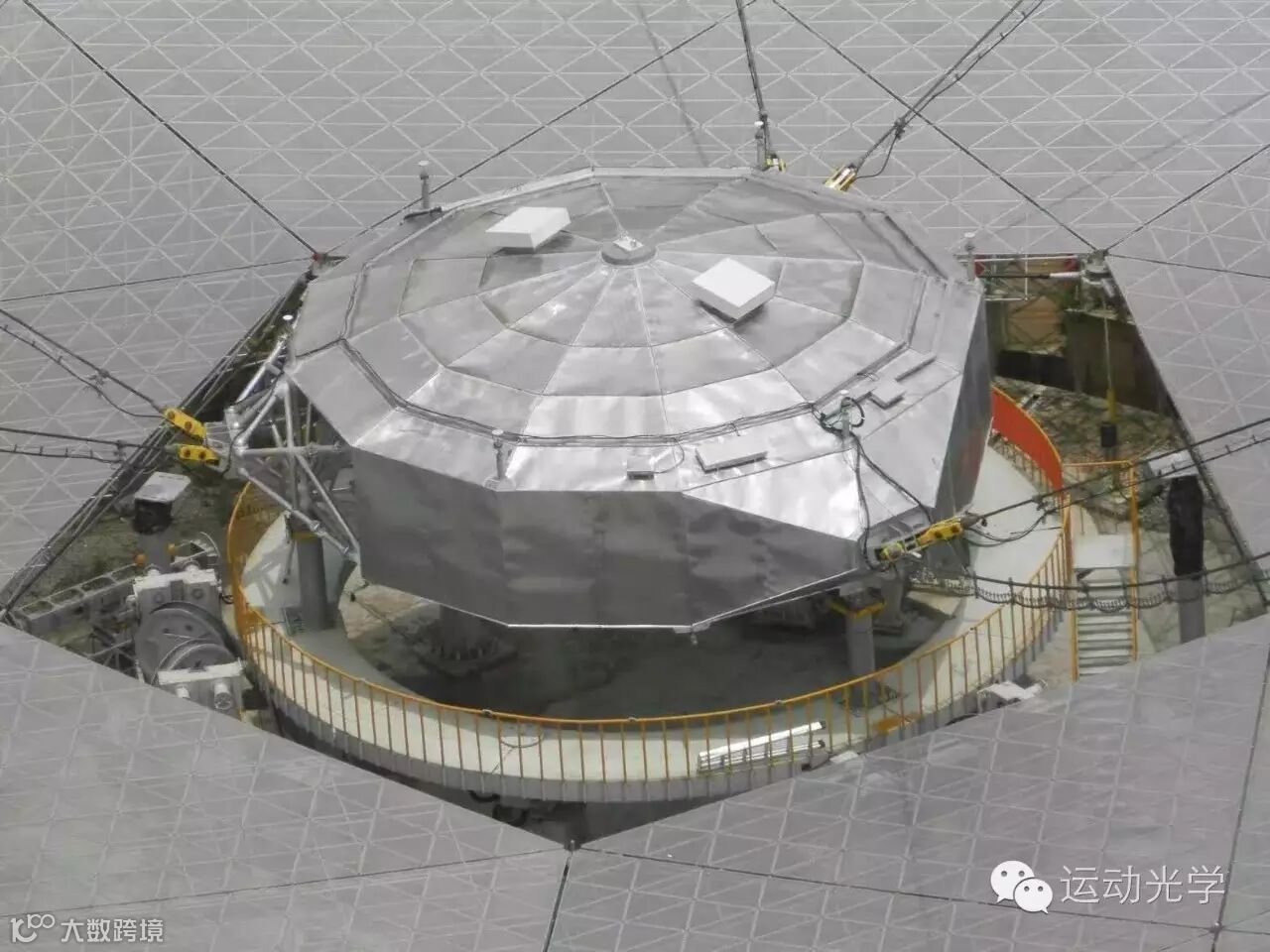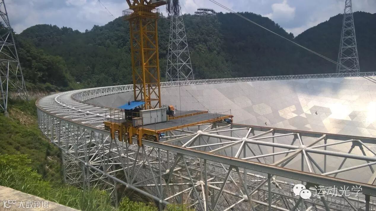 馈源就是这么个东西,重30t,馈源塔吊装能在球面镜内移动。局部形成的300米直径抛物面所接收的信号汇集到馈源。
