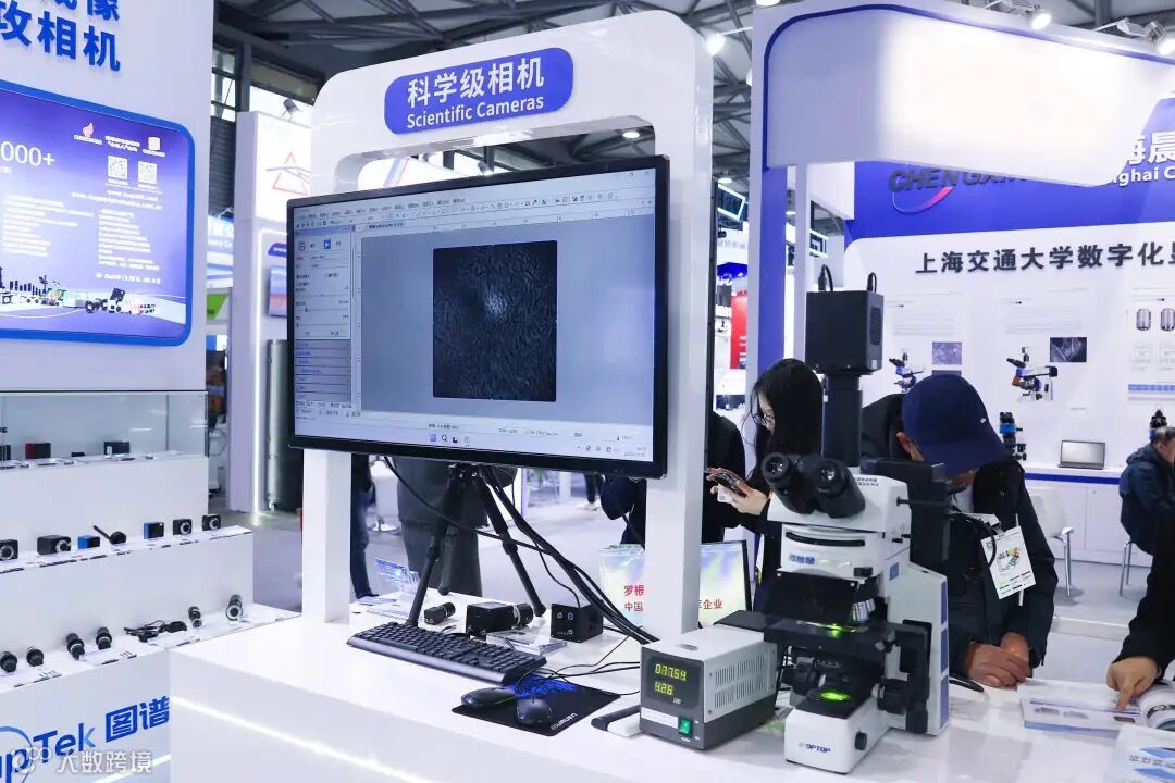 开展首日,图谱光电凭借国际先进水平的成像技术研发体系和多元化的产品矩阵,吸引了众多行业专家及专业观众驻足咨询。展台重点展示了工业与生命科学成像产品系列、工业检测产品与光学模组系列、天文成像产品系列以及软件应用等产品,并提供多平台标准SDKs,以满足特定应用需求及ODM/OEM 定制服务。现场产品动态演示与互动交流,高效直观呈现其技术优势与应用场景,赢得了观众的高度认可。