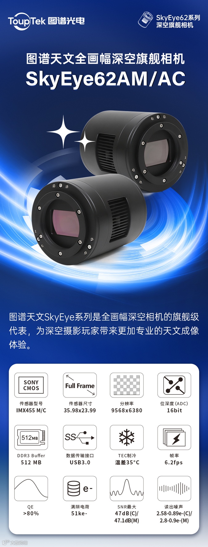 SkyEye62AM/AC全画幅深空制冷相机,大靶面纯净无纹
