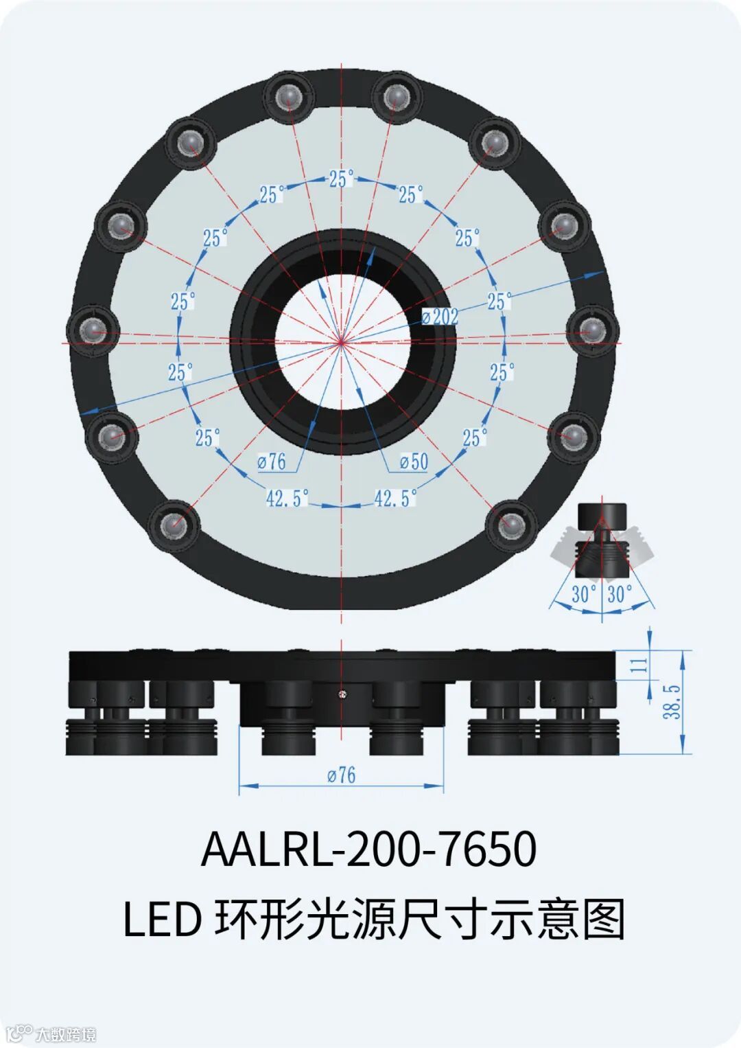 AALRL-200-7650 LED环形光源,结构紧凑,安装便捷,广泛适用于工业和科研领域的精准照明,以及大视场、高均匀性照明需求。