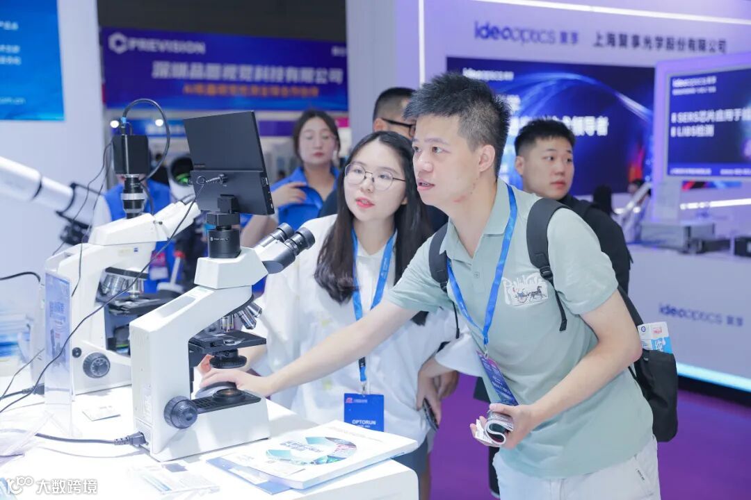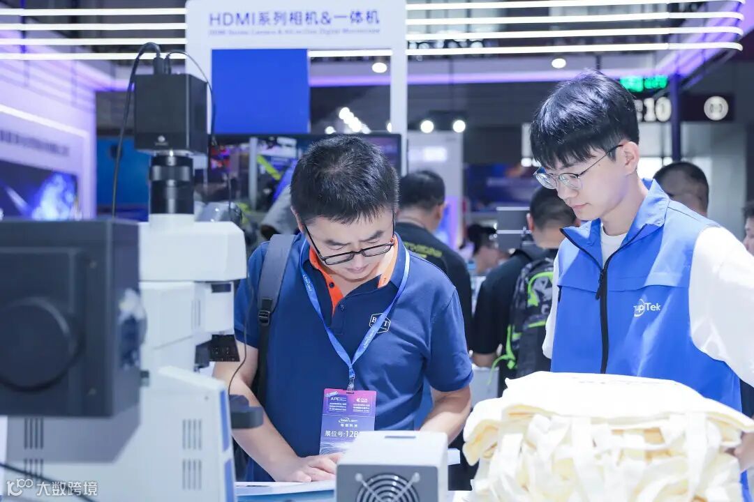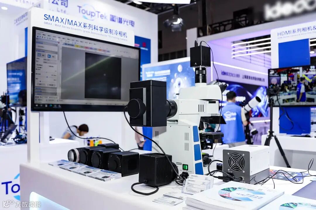 图谱光电展台以先进的光学成像产品和软件控制、技术服务平台为基础,搭配显微镜、工业镜头和天文望远镜等光学设备,提供优质的光学成像服务。现场工作人员热情地技术演示成像产品,使整个展台成为众多目光的焦点。