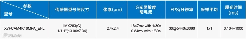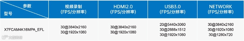 1、X7FCAM4K16MPA HDMI-EFL系列相机传感器的主要参数