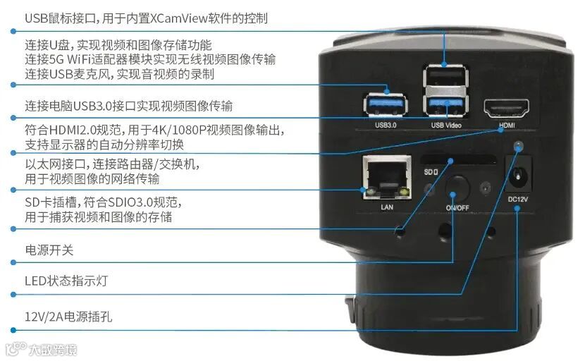 ⚫ SD卡/USB闪存盘保存捕获视频或图像,并支持本地预览与回放;