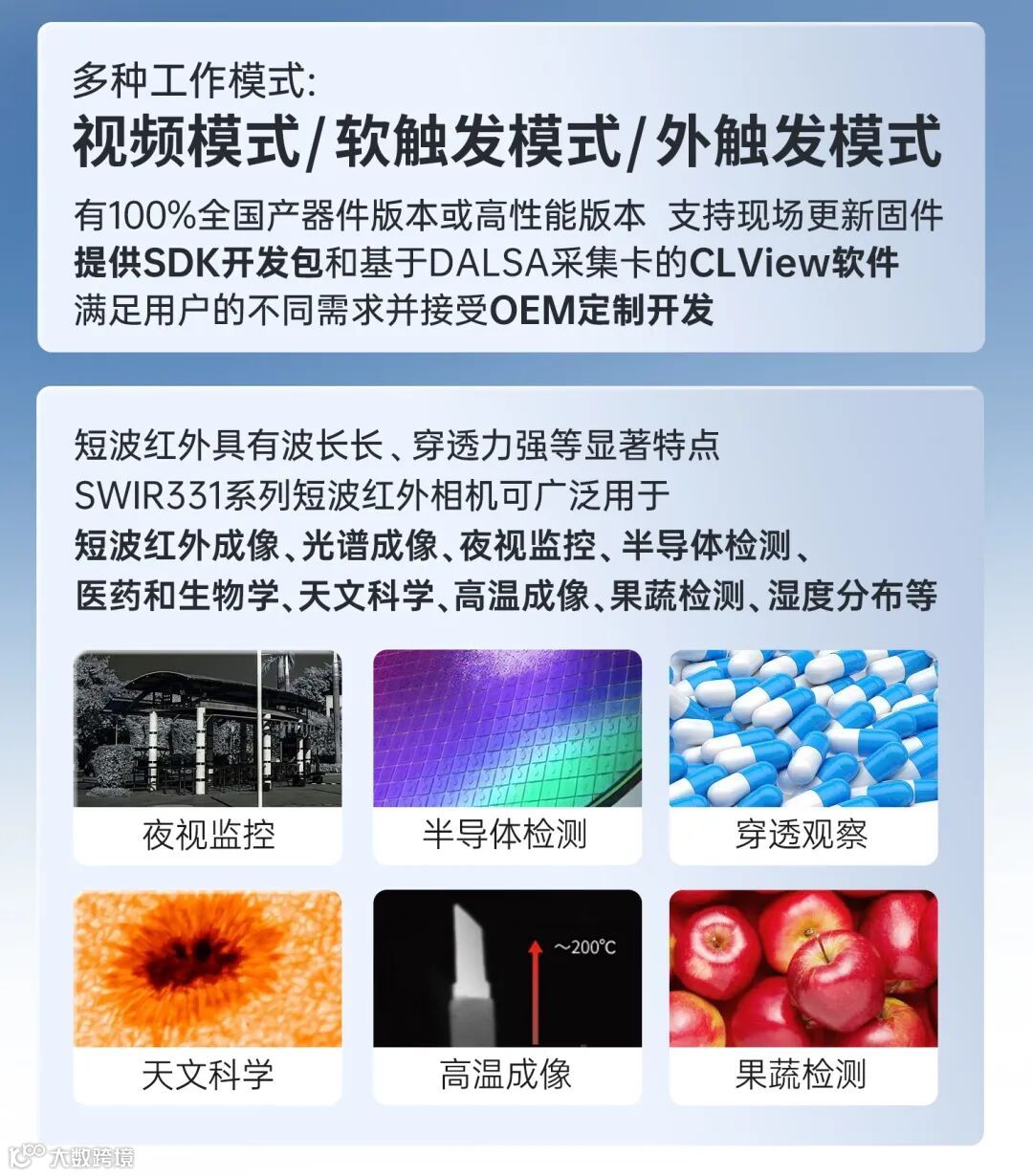 提供 SDK 开发包和基于 Dalsa 采集卡的 CLView 软件 |