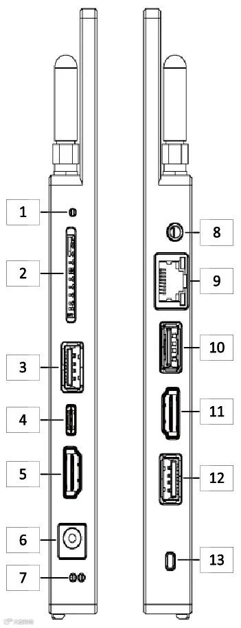 Recovery键:配合开机键13使用,两者同时按下可进入固件烧录模式。 |