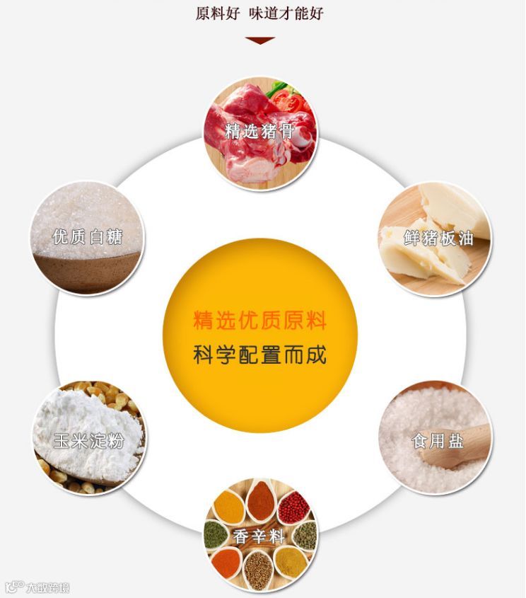 结合传统及现代科学工艺,精选猪骨、新鲜猪板油、优质白砂糖等原料科学配置而成,真材实料,原料好,味道更好!