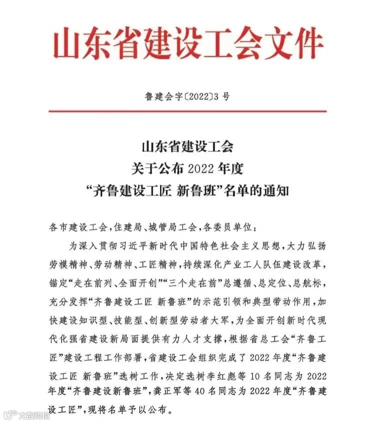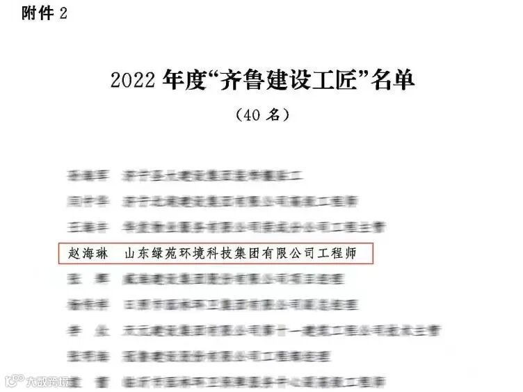 近日,山东省建设工会委员会发布2022年度“齐鲁建设工匠 新鲁班”名单,我集团副总裁、山东绿苑环境科技集团有限公司总经理赵海琳先生荣获2022年度“齐鲁建设工匠”荣誉称号。