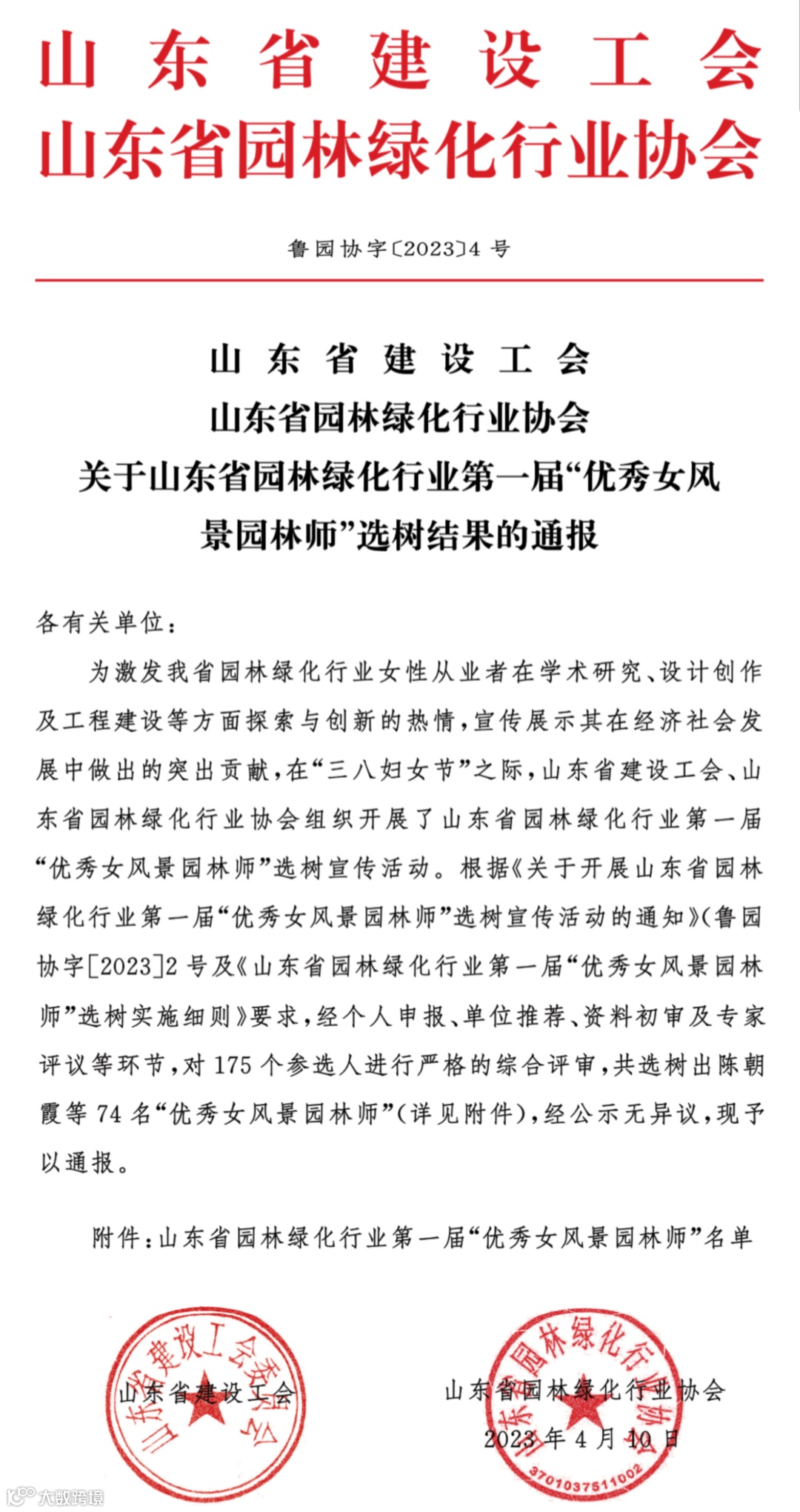 山东省建设工会和山东省园林绿化行业协会共同组织开展的山东省园林绿化行业第一届“优秀女风景园林师”选树宣传活动,旨在激发我省园林绿化行业女性从业者在学术研究、设计创作及工程建设等方面探索与创新的热情,宣传展示其在经济社会发展中做出的突出贡献,对肯定和展现女风景园林师巾帼风采具有重要意义。