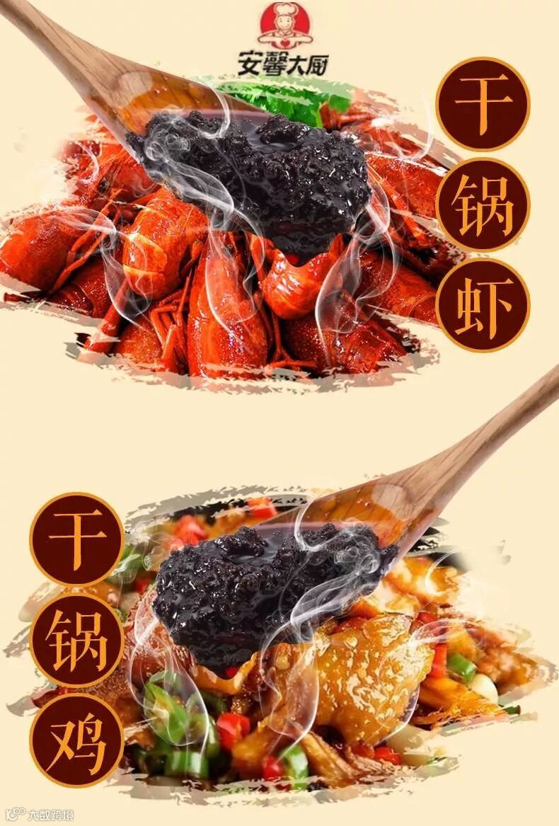 干锅鸡、干锅小龙虾、干锅排骨、干锅兔、干锅肥肠、干锅包菜......只需要用干锅美味酱就能烹调出一桌的美味,我有点不淡定了!