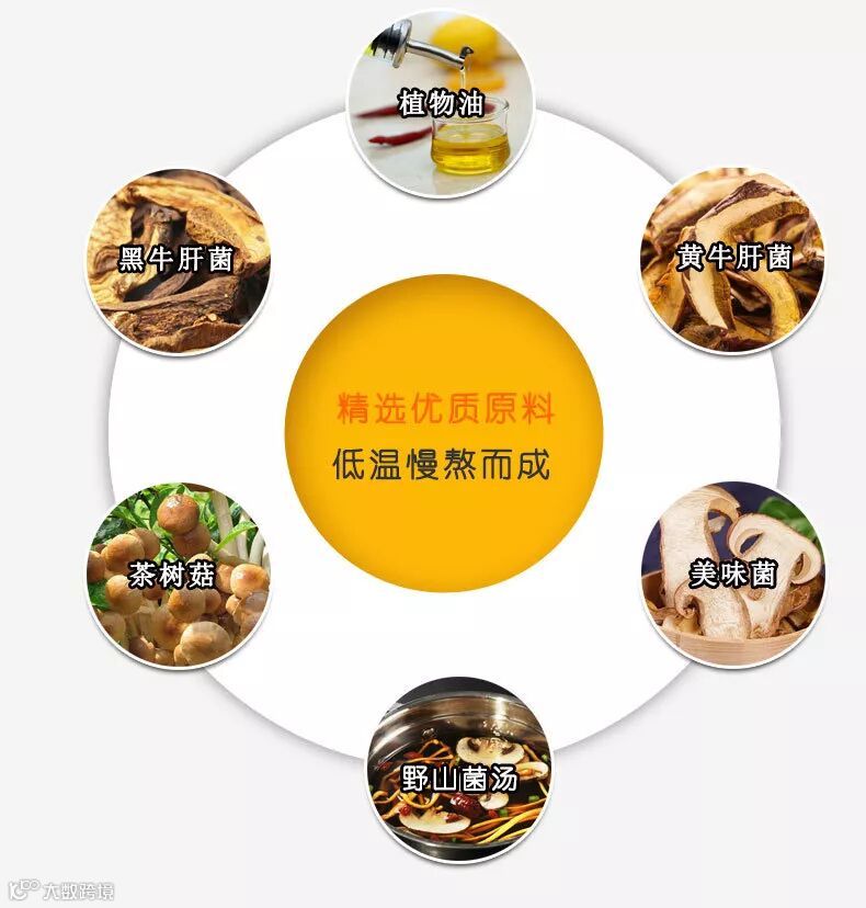 采用黑牛肝菌、黄牛菌、茶树菇等
