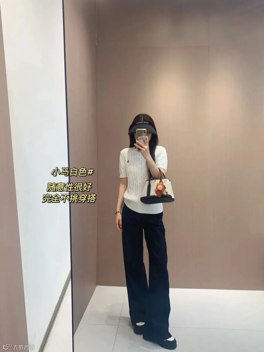 我面料是100%纯棉纱线,柔软亲肤,透气不闷,贴身穿完全不扎,舒适度直接拉满。自带恰到好处的弹性,上身舒适包裹,没有紧绷束缚,质感细腻高级,摸得到的好品质。(小马款比字母款稍微厚一点的)
