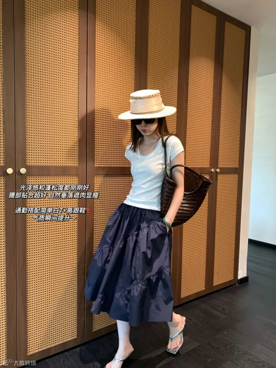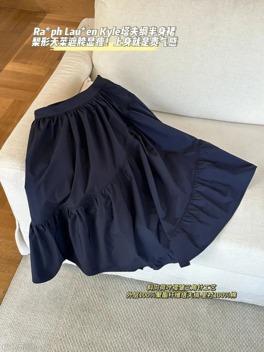 超重工❗️Rap *塔夫绸半身裙|三角针斜接缝缩褶工艺+全棉内衬!