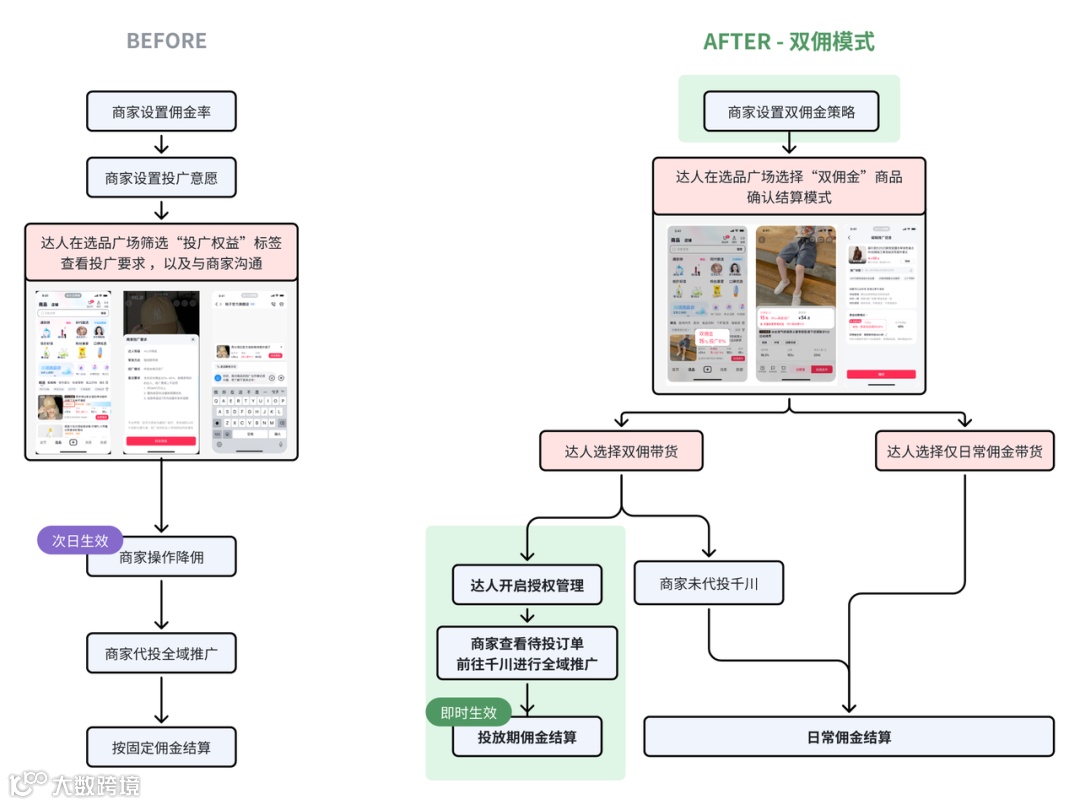 “上调最低佣金+双佣合作”,一定程度上可以打破“低佣投流、纯靠流量变现”的路径依赖:日常高佣金鼓励达人通过优质内容获取自然流量、提升转化;投流期低佣金则倒逼达人在付费场景下,必须用内容质量提升投放效率,避免单纯烧钱换流量。