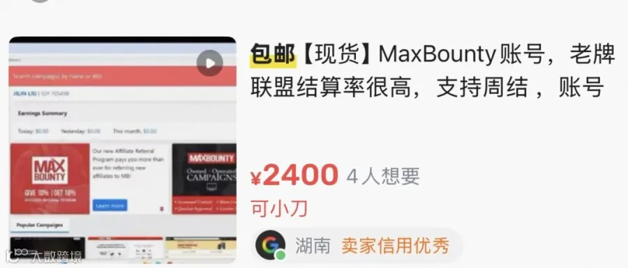 大家可以看一下咸鱼上卖maxbounty一个账号的价格,大概2500馒头。