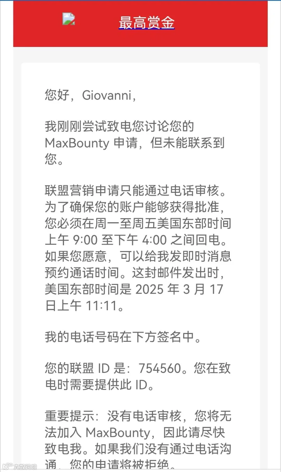 ◆ 于是我这几天开始研究maxbounty如何下号,根据我之前了解,这个联盟好像打电话申请。