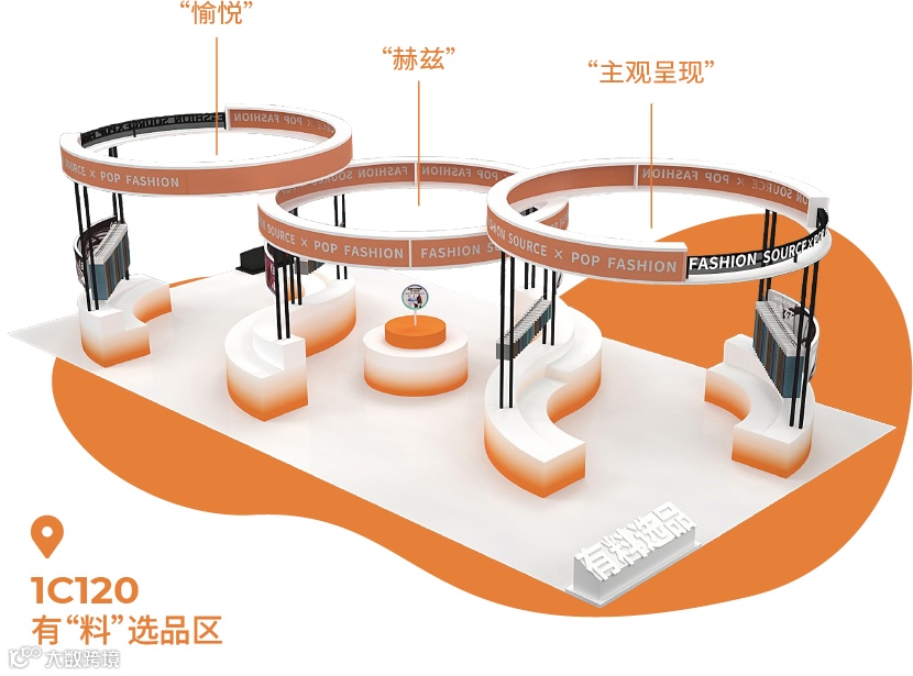 FS有“料”选品区围绕“共振RESONANCE”展开,以“愉悦”、“赫兹”、“主观呈现”三大趋势维度,链接时装、商务、休闲、运动四大应用场景。100家展商、300款精选面料构建起从趋势洞察到商品转化的桥梁,让创意不再停留于概念层,而是快速进入市场语境。