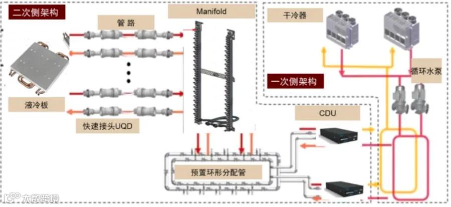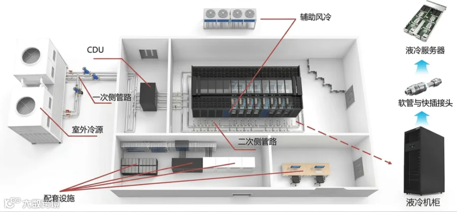 通过构建“一次侧冷源+二次侧循环+末端液冷”三层协同架构,围绕服务器机柜、CDU冷却分配单元、冷站系统及余热回收模块,实现全流程智能感知与动态优化。