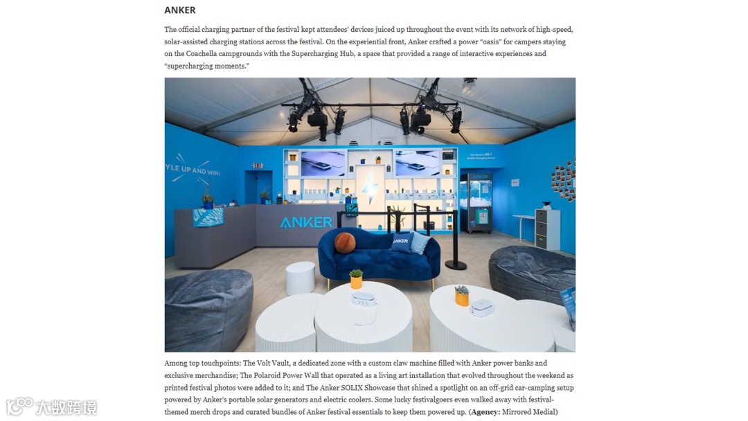 例如Event Marketer在科切拉文章中,将Anker单独列为代表性案例,为其提供了权威的行业背书,推动其在专业领域的再次传播。
